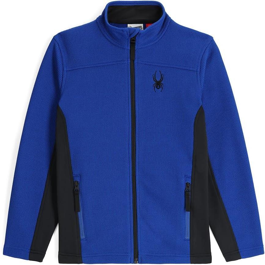 If your little one loves hitting the slopes, he'll need the Spyder-Bandit mid-layer to keep him warm and dry. Made with a lightweight polyester sweater knit bonded to anti-pill fleece and stretch double knit polyester fleece with a brushed back, this warm middle layer will keep him comfortable all day long. The stretch fleece at the underarm and side body allows for easy movement, while the YKK Coil center front with contrast chain and thread color adds a touch of style. Don't let cold conditions ruin his fun – get him the Spyder- Bandit mid-layer today.