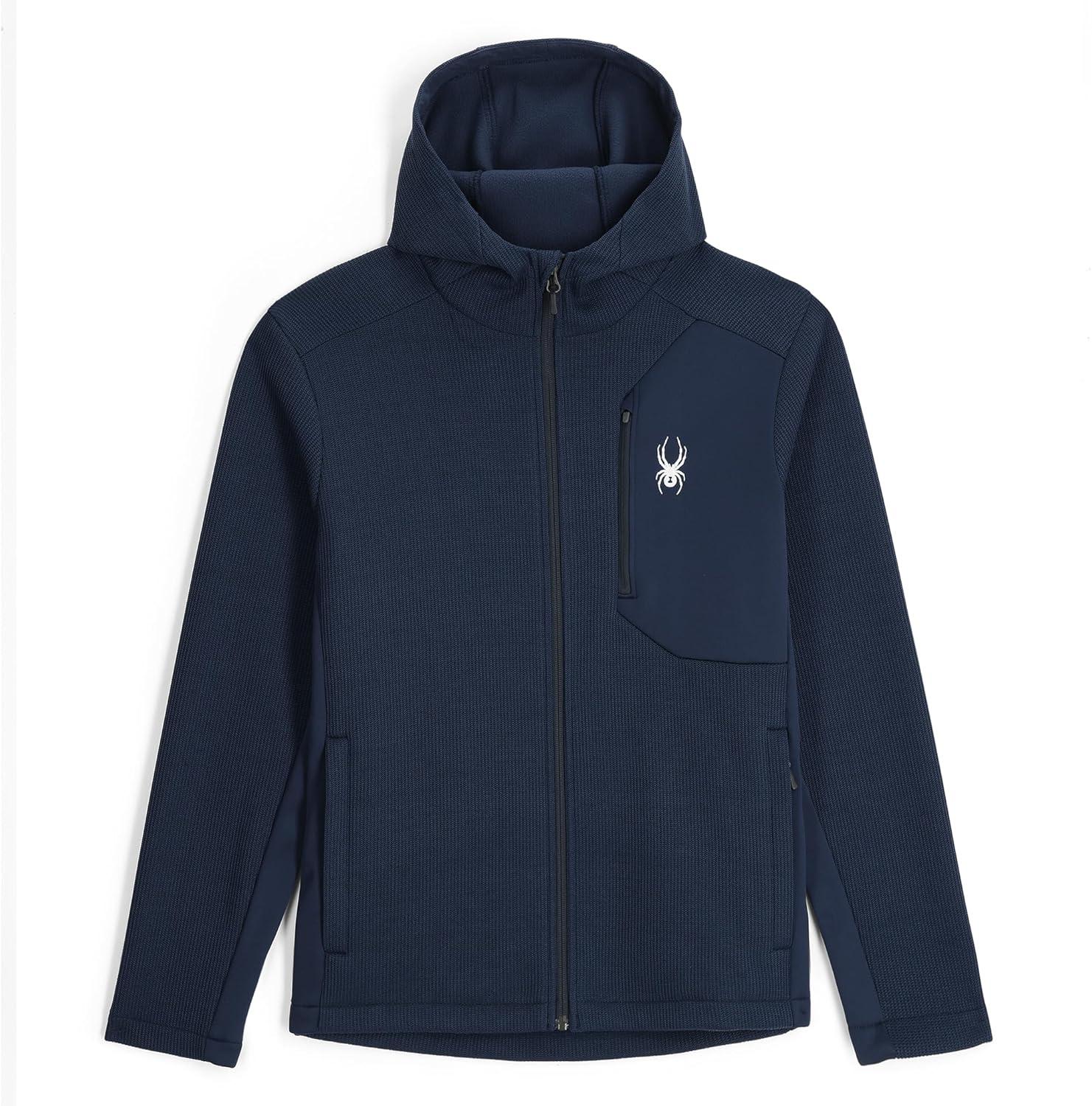Spyder mens Bandit Hooded Zip Ski Mid Layer Sweater Jacket(True Navy)
