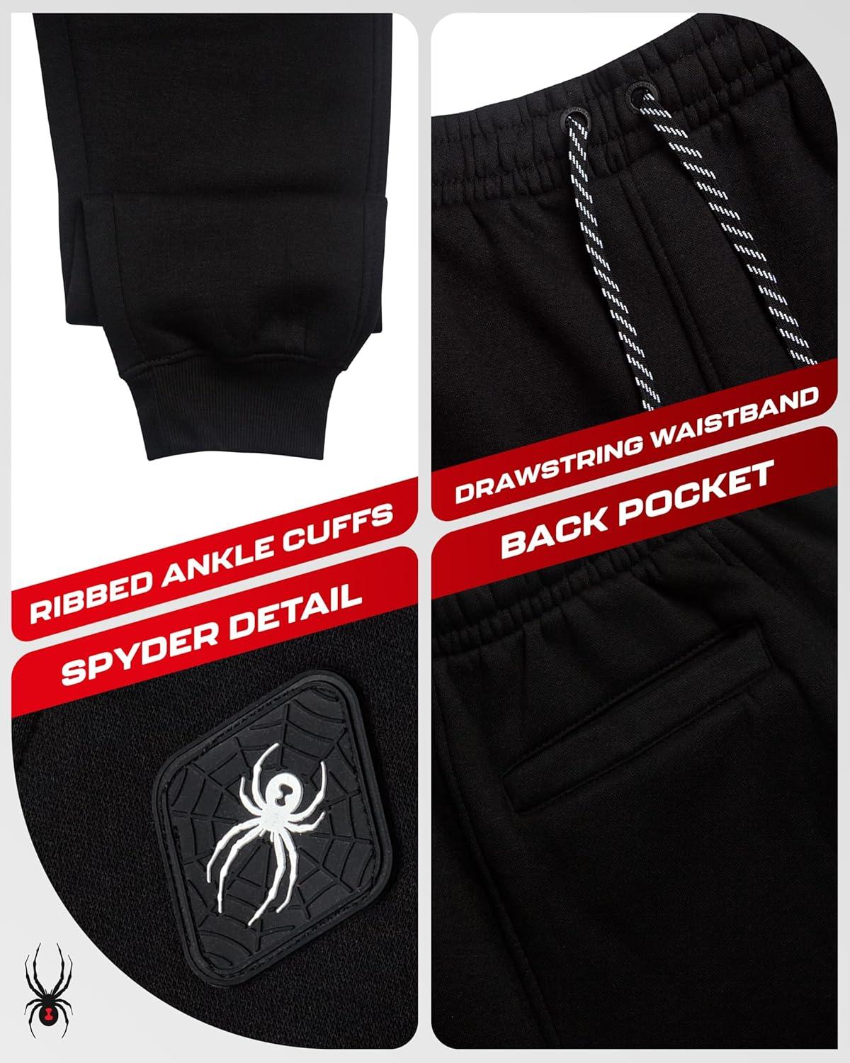 Spyder Mens Cargo Joggers – Soft Poly Fleece Mens Sweatpants with Pockets and Drawcord Waistband for Jogging Hiking Workout(Black)