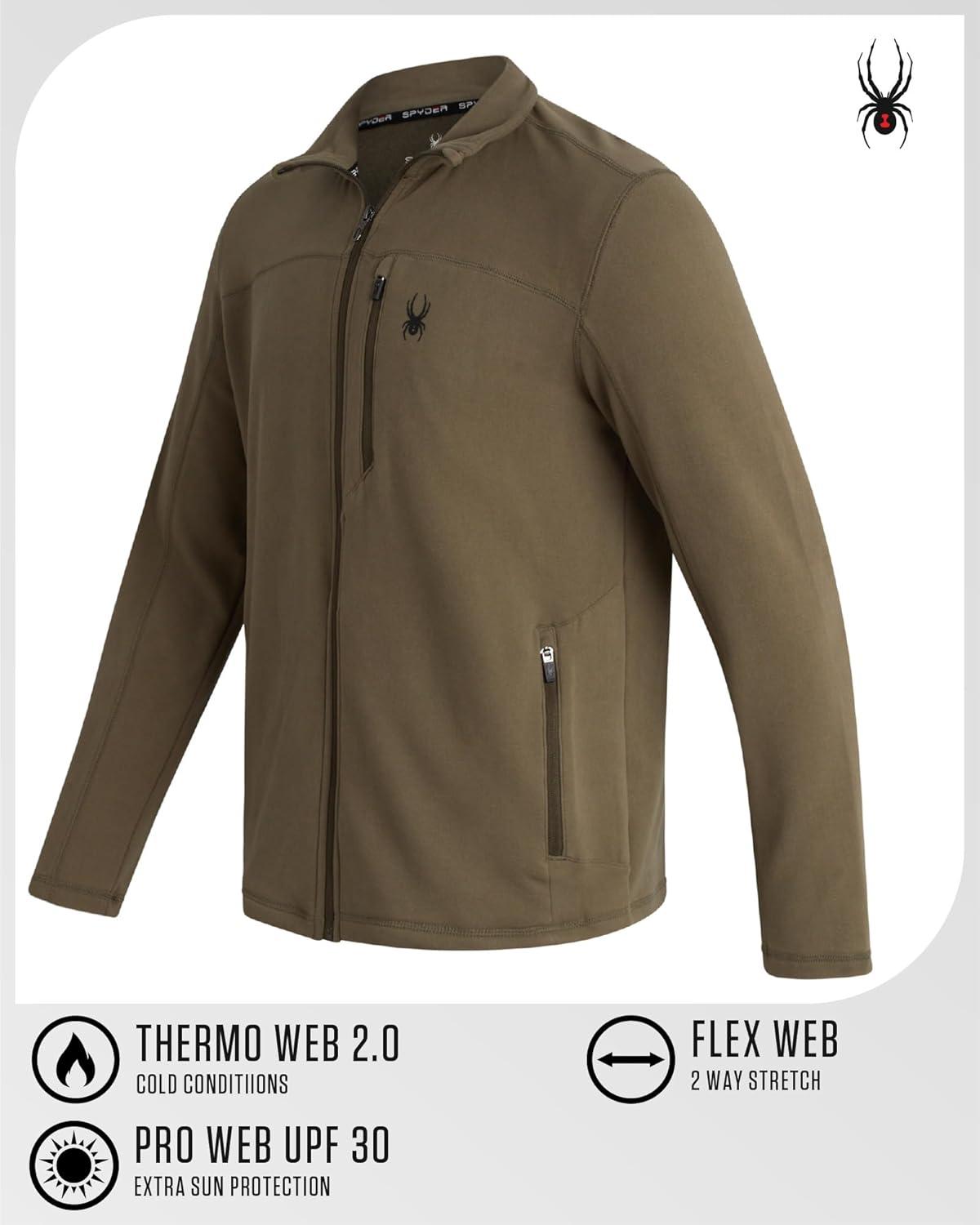 Spyder Mens Fleece Jacket – Polar Fleece Suede Mens Jacket Lightweight UPF 30+ Athletic Zip Up 2 Way Stretch Coat for Men(Olive)