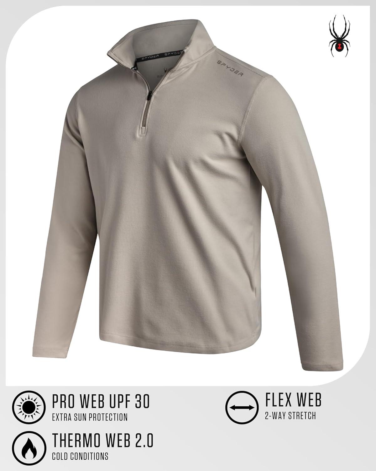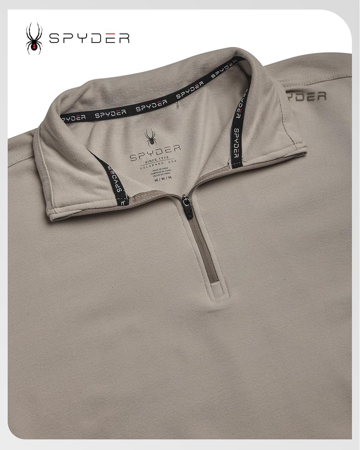 Spyder Mens Quarter Zip Pullover Sweatshirt – Lightweight Soft Fleece Athletic Pullover – Gym & Running Sweatshirts for Men(Bone)