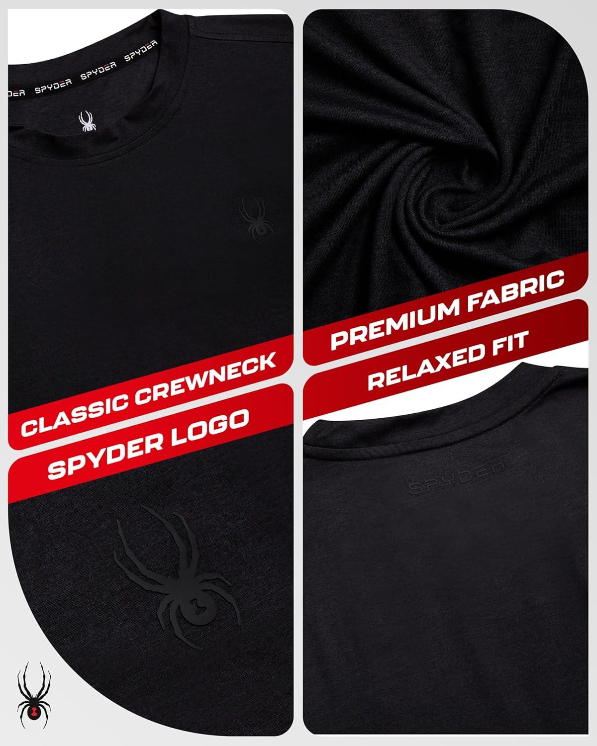 Spyder Mens T Shirt – Athletic Performance Short Sleeve Running Workout Tee – Moisture Wicking Crewneck Shirts for Men(Black Solid)