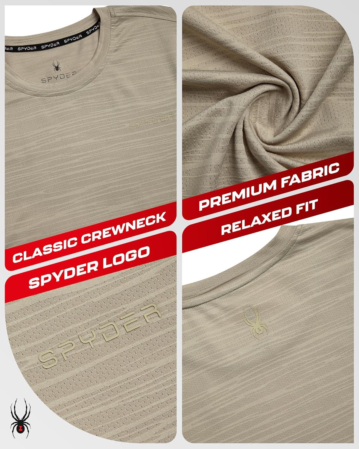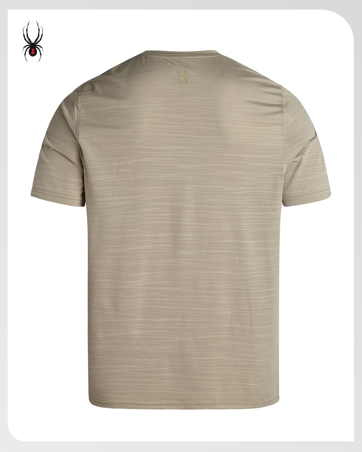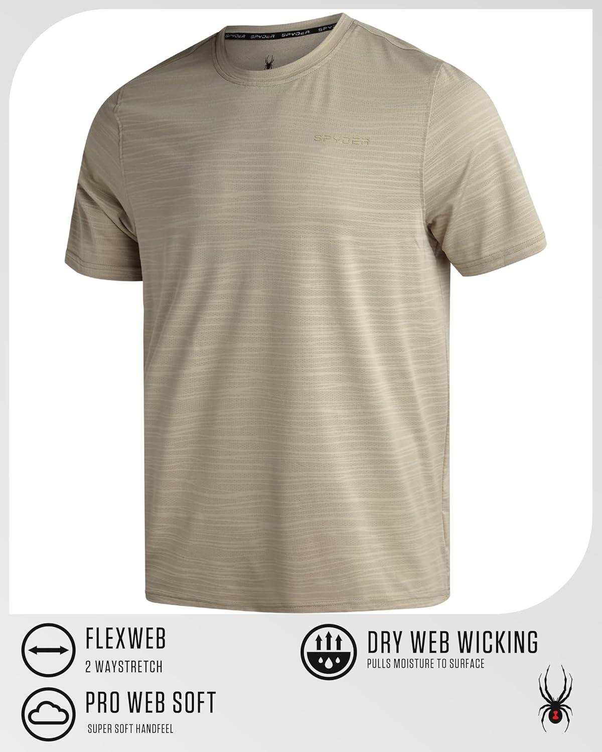 Spyder Mens T Shirt – Athletic Performance Short Sleeve Running Workout Tee – Moisture Wicking Crewneck Shirts for Men(Bone Jacquard)