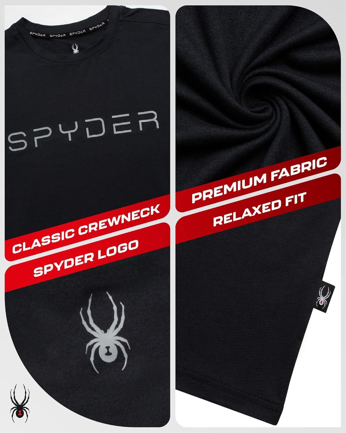 Spyder Mens T Shirt – Athletic Performance Short Sleeve Running Workout Tee – Moisture Wicking Crewneck Shirts for Men(Heather Black)