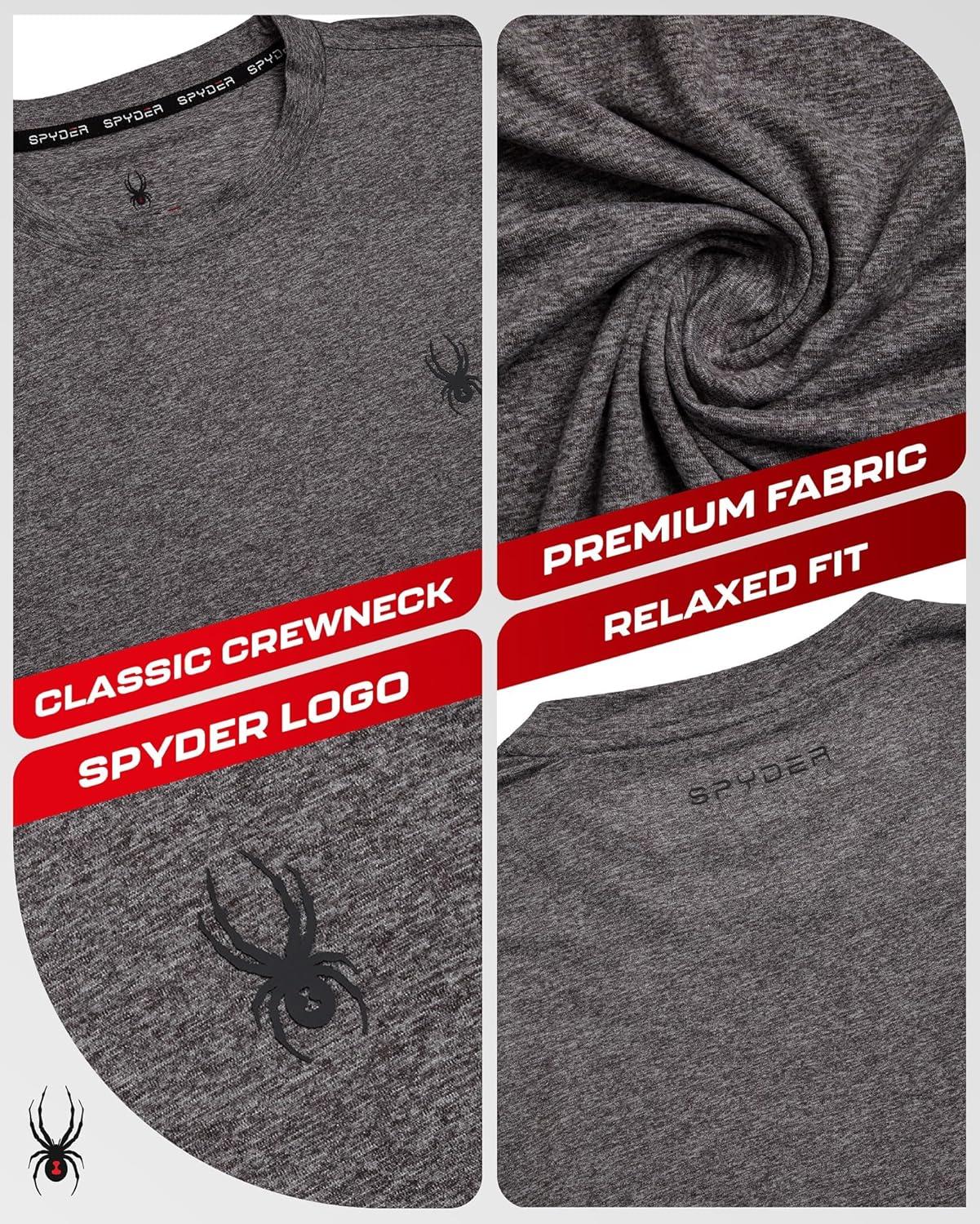 Spyder Mens T Shirt – Athletic Performance Short Sleeve Running Workout Tee – Moisture Wicking Crewneck Shirts for Men(White Chest Logo)