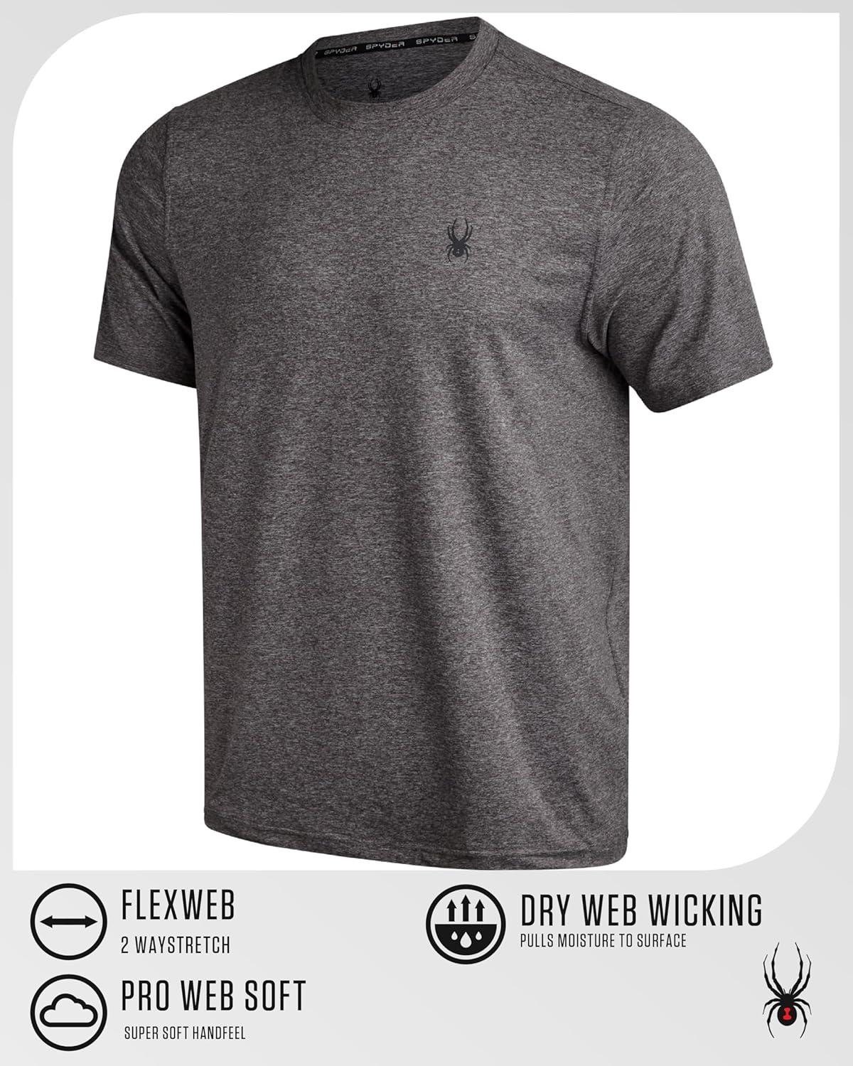 Spyder Mens T Shirt – Athletic Performance Short Sleeve Running Workout Tee – Moisture Wicking Crewneck Shirts for Men(Polar Solid)