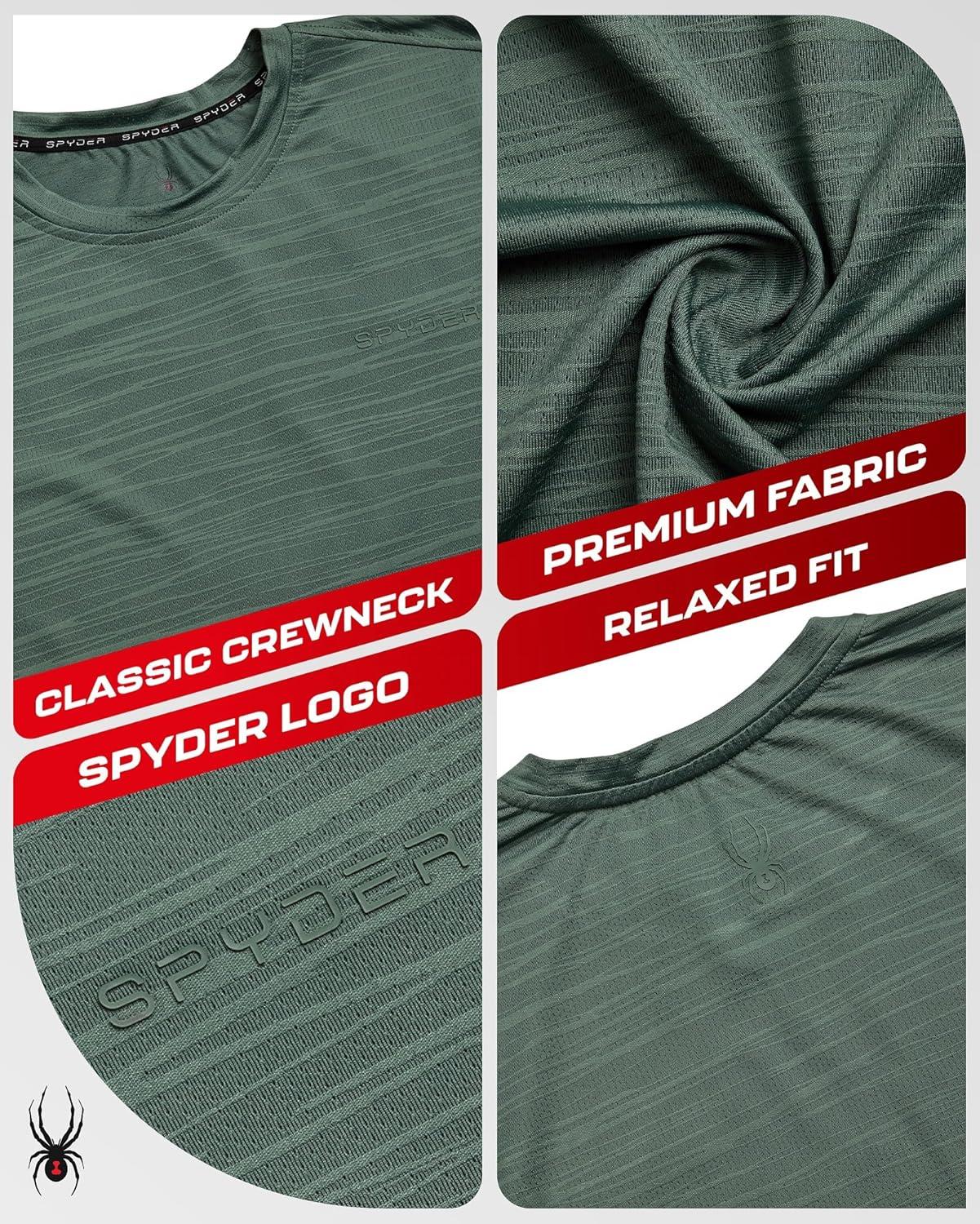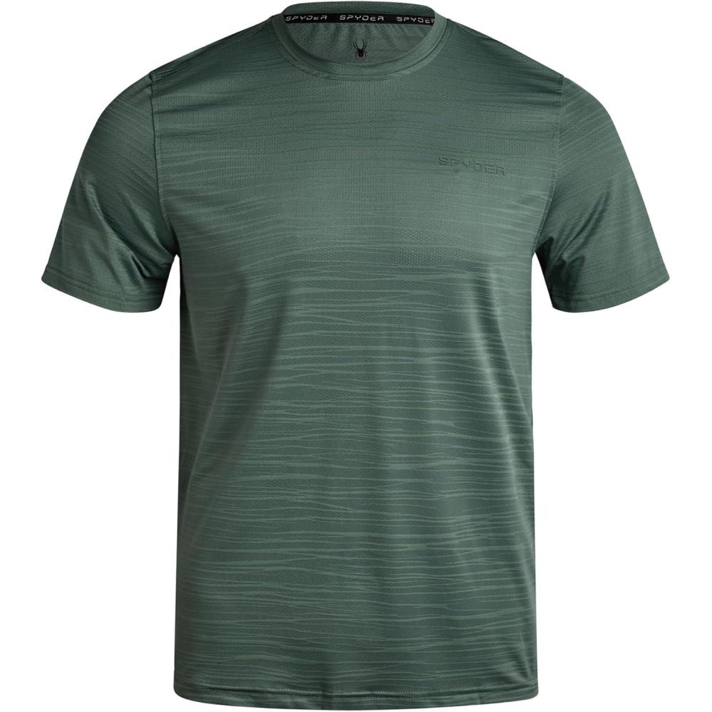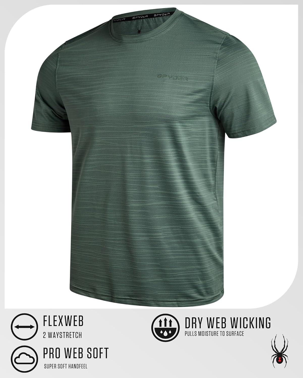 Spyder Mens T Shirt – Athletic Performance Short Sleeve Running Workout Tee – Moisture Wicking Crewneck Shirts for Men(Spruce Green Jacquard)