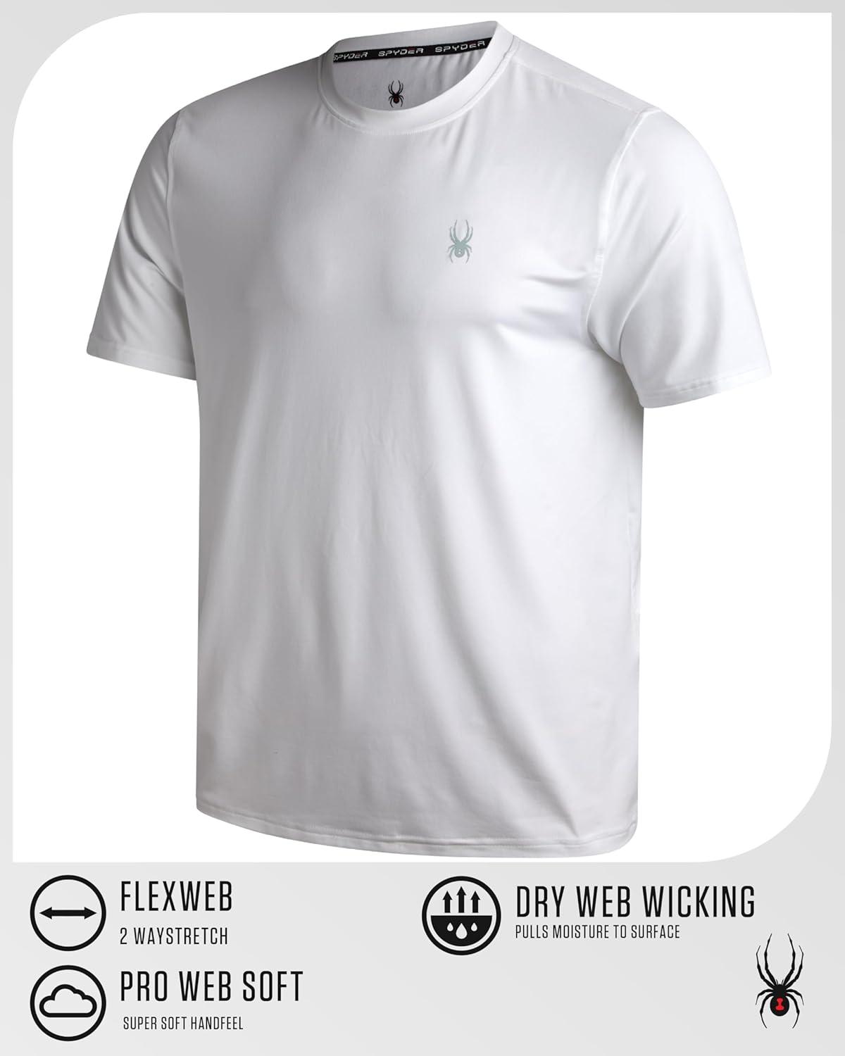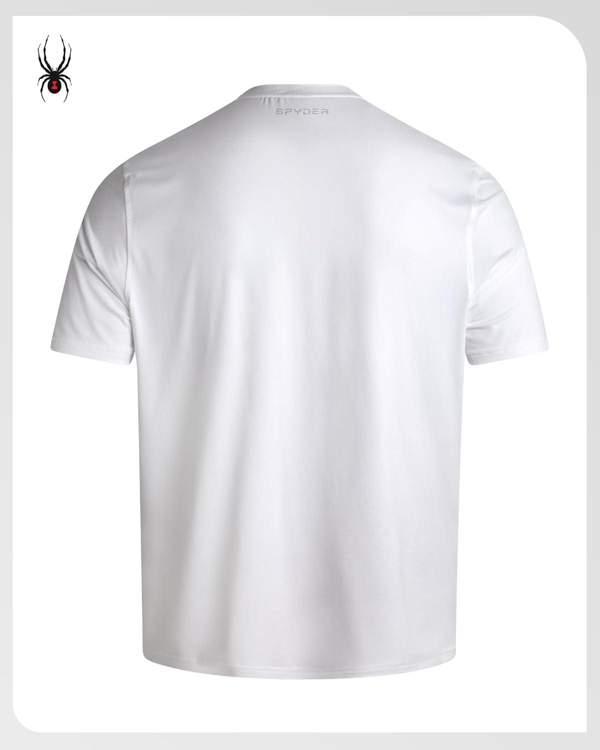 Spyder Mens T Shirt – Athletic Performance Short Sleeve Running Workout Tee – Moisture Wicking Crewneck Shirts for Men(White Chest Logo)
