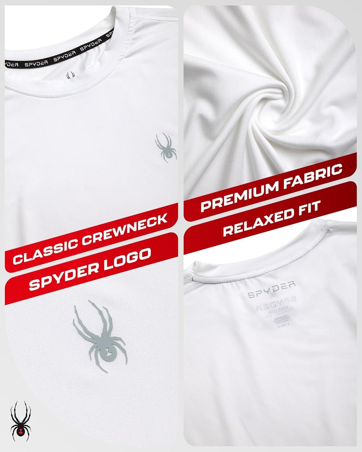 Spyder Mens T Shirt – Athletic Performance Short Sleeve Running Workout Tee – Moisture Wicking Crewneck Shirts for Men(White Sleeve Logo)