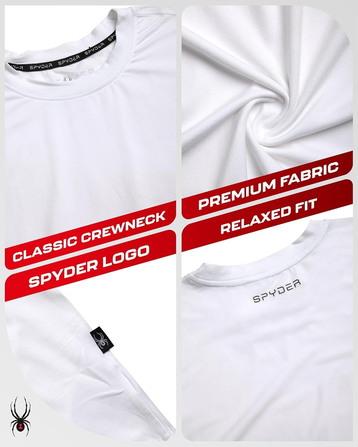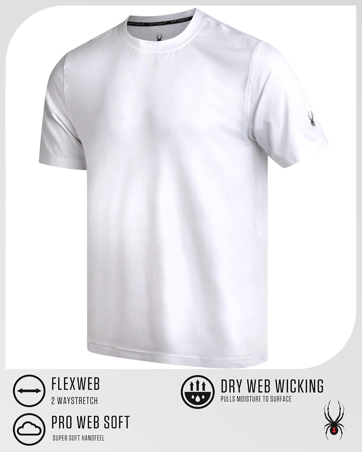 Spyder Mens T Shirt – Athletic Performance Short Sleeve Running Workout Tee – Moisture Wicking Crewneck Shirts for Men(White Sleeve Logo)