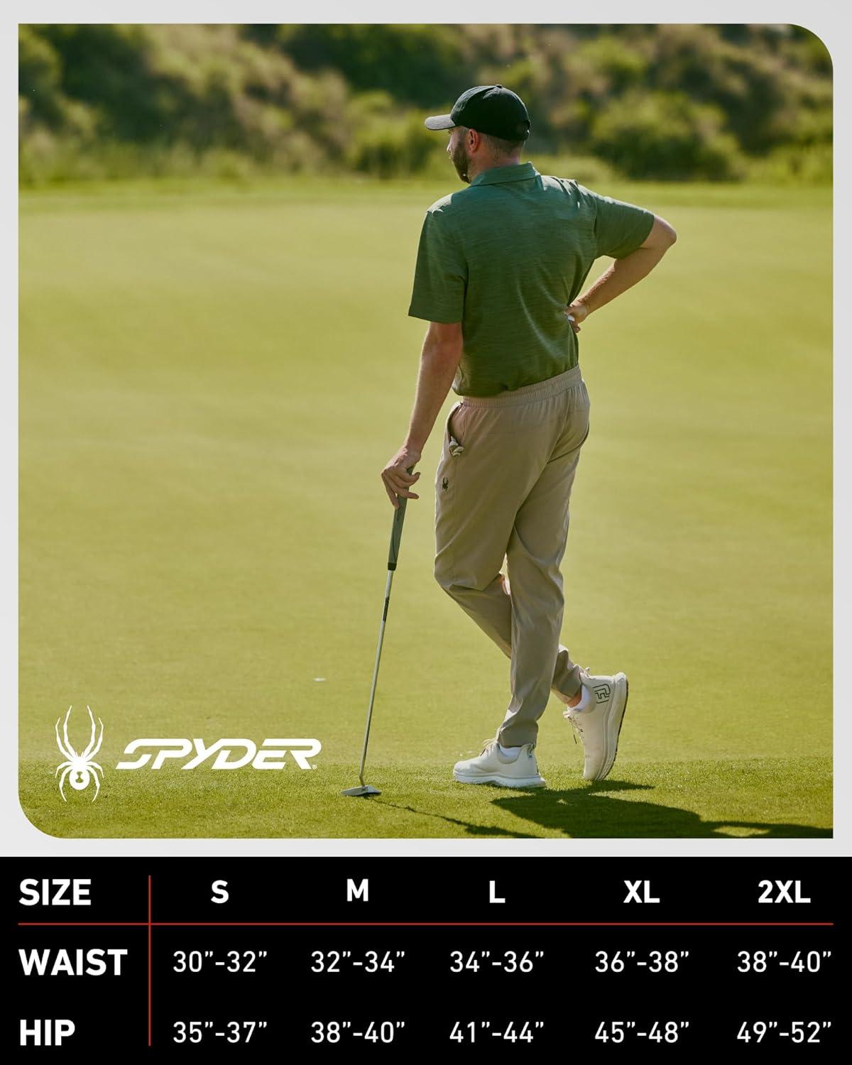 Upgrade your daily rotation with this versatile Spyder sweatpants for men designed to perform on the job, on the course, and everywhere in between. These lightweight dress pants for men double as breathable mens golf pants, built with stretch fabric that moves with you. Moisture-wicking, quick-drying, and flexible, they’re perfect whether you’re working long hours, walking 18 holes, or running errands. With a modern athletic fit, adjustable waistband, and cuffed ankles, these mens stretch work pants offer comfort, mobility, and a sharp tapered silhouette that transitions easily from work to play. Engineered as men’s work pants and golf pants men depend on, they provide weather-ready protection with UPF 30 Sun Protection and Thermoweb 1.0 for cool weather. From outdoor work pants for men to golf joggers pants men love, they adapt to shifting conditions while maintaining breathable ease. Ideal for work clothes for men, casual work pants, or mens performance pants, they check every box. Whether you’re searching for comfy work pants, mens black work pants, or slim fit golf pants for men, this pair offers all-day function with a clean, professional style. They’re great as men's fashion clothing, mens travel pants, or uniforms, men's work pants essentials that move with your schedule. Pair them with polos, tees, or dress shirts for work outfits that balance utility and polish. Machine-washable and wrinkle-resistant, they’re the low-maintenance choice for mens work pants lightweight enough for summer work pants for men but durable for year-round use. Designed for movement, these men's sweatpants options are just as effective in the office as they are on the green. Comfortable work pants men can wear every day, they combine the best of stretch golf pants for men and breathable work pants, making them an essential upgrade to your wardrobe.
