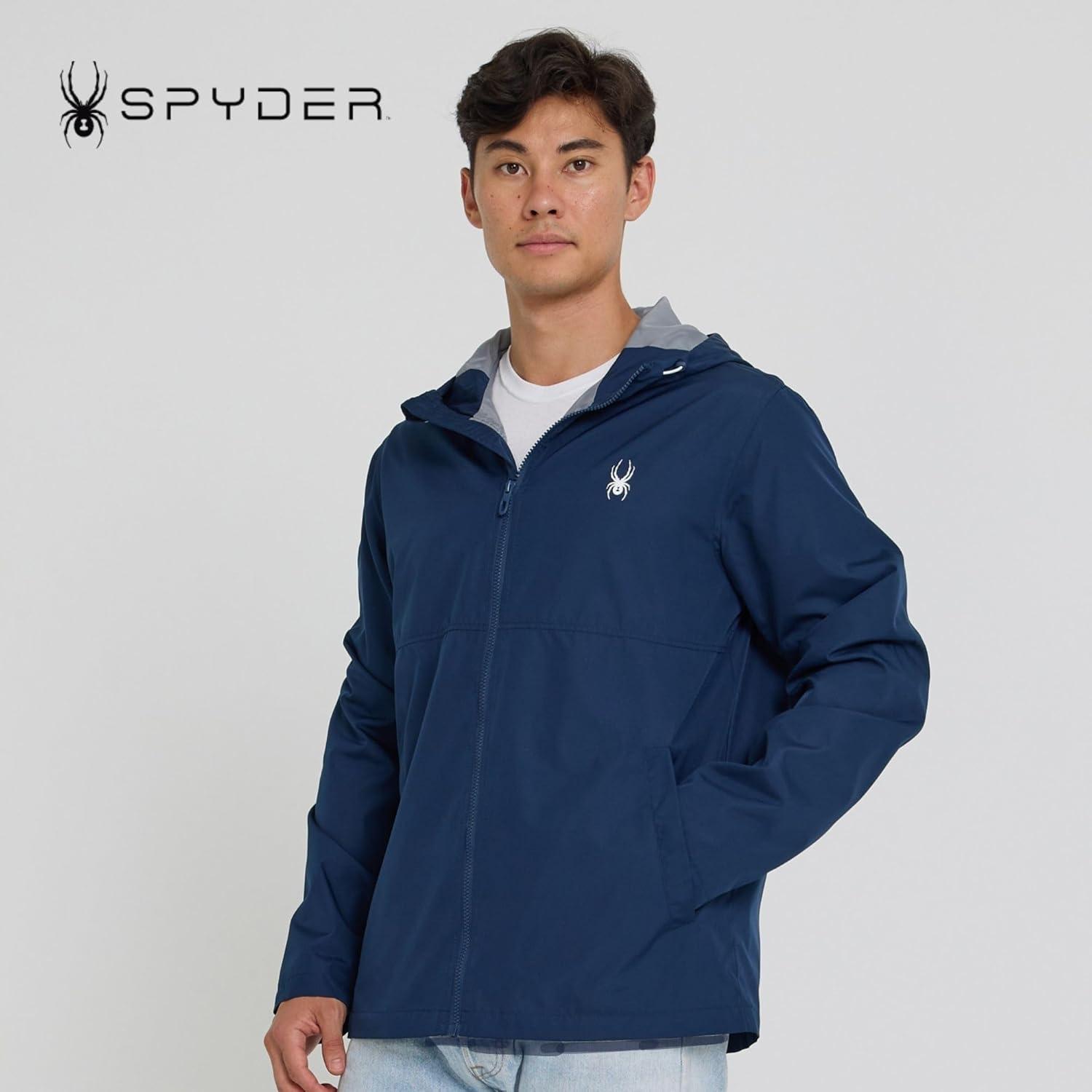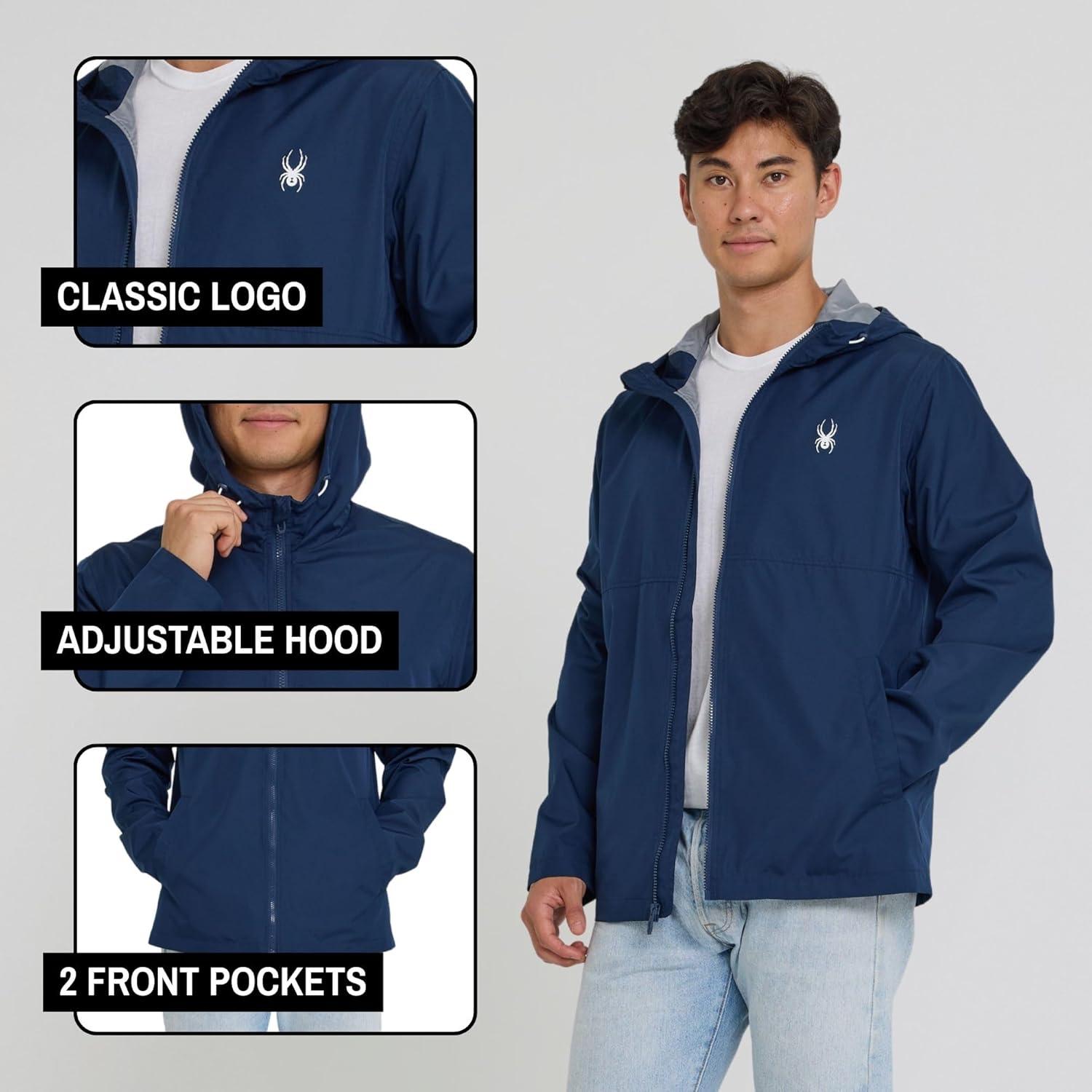 Spyder Packable Rain Jacket Men – Waterproof Windbreaker with Hood, Lightweight Rain Coat Slicker, Travel, Golf, Fishing(Navy)
