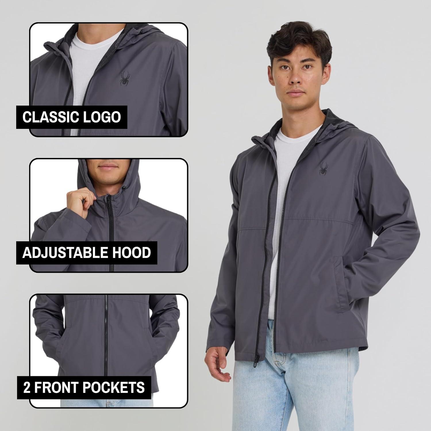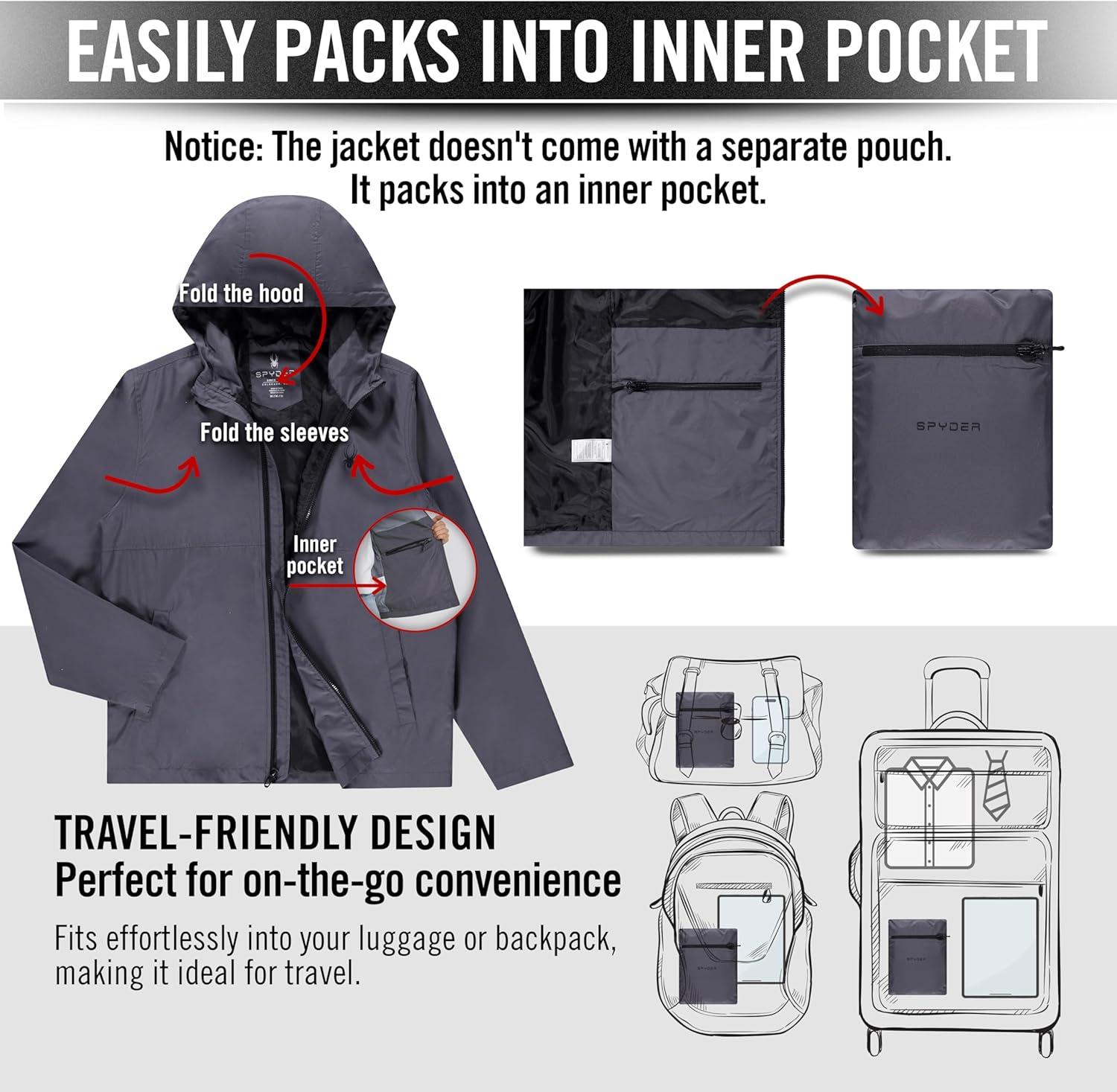 Spyder Packable Rain Jacket Men – Waterproof Windbreaker with Hood, Lightweight Rain Coat Slicker, Travel, Golf, Fishing(Polar)