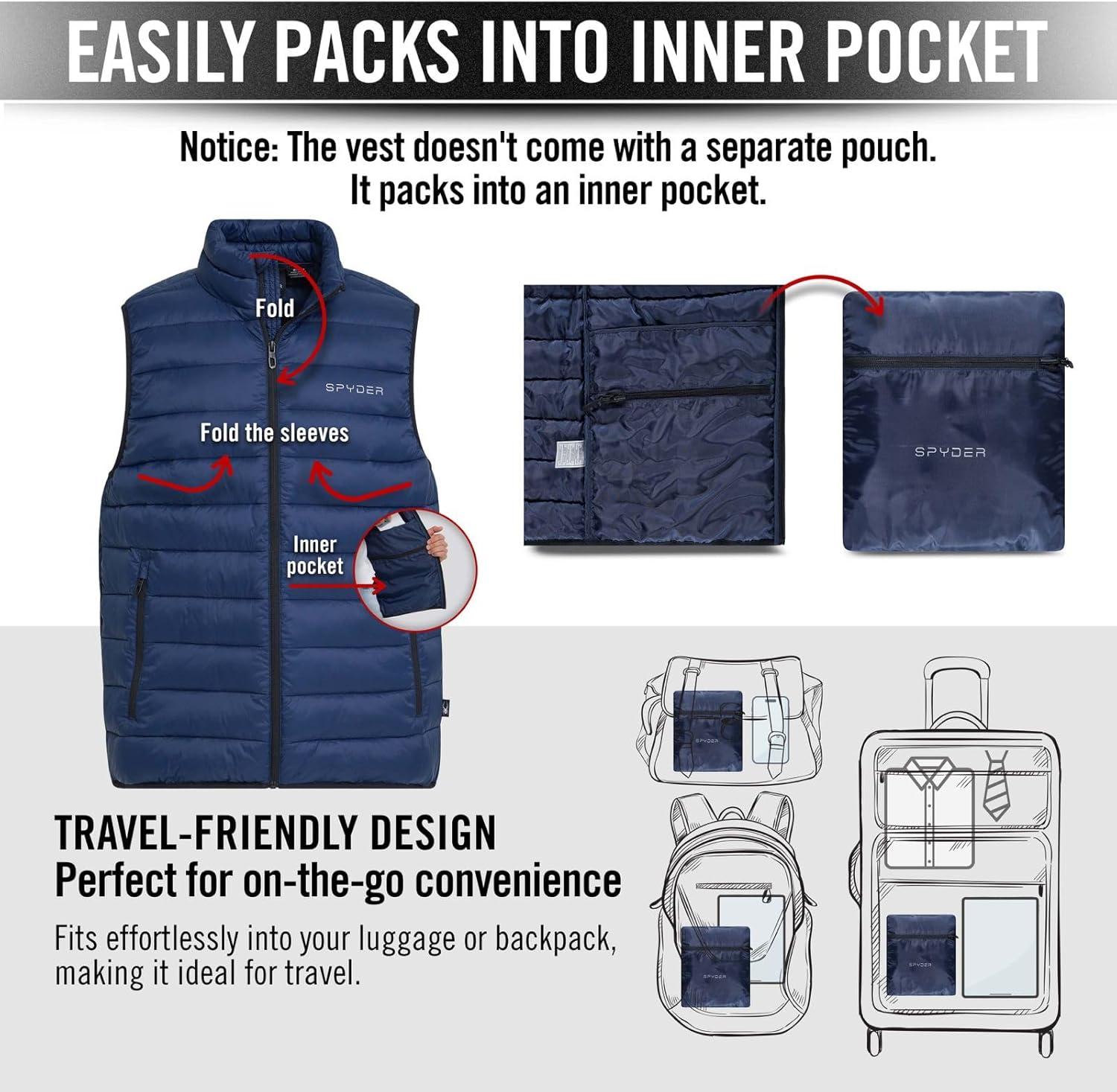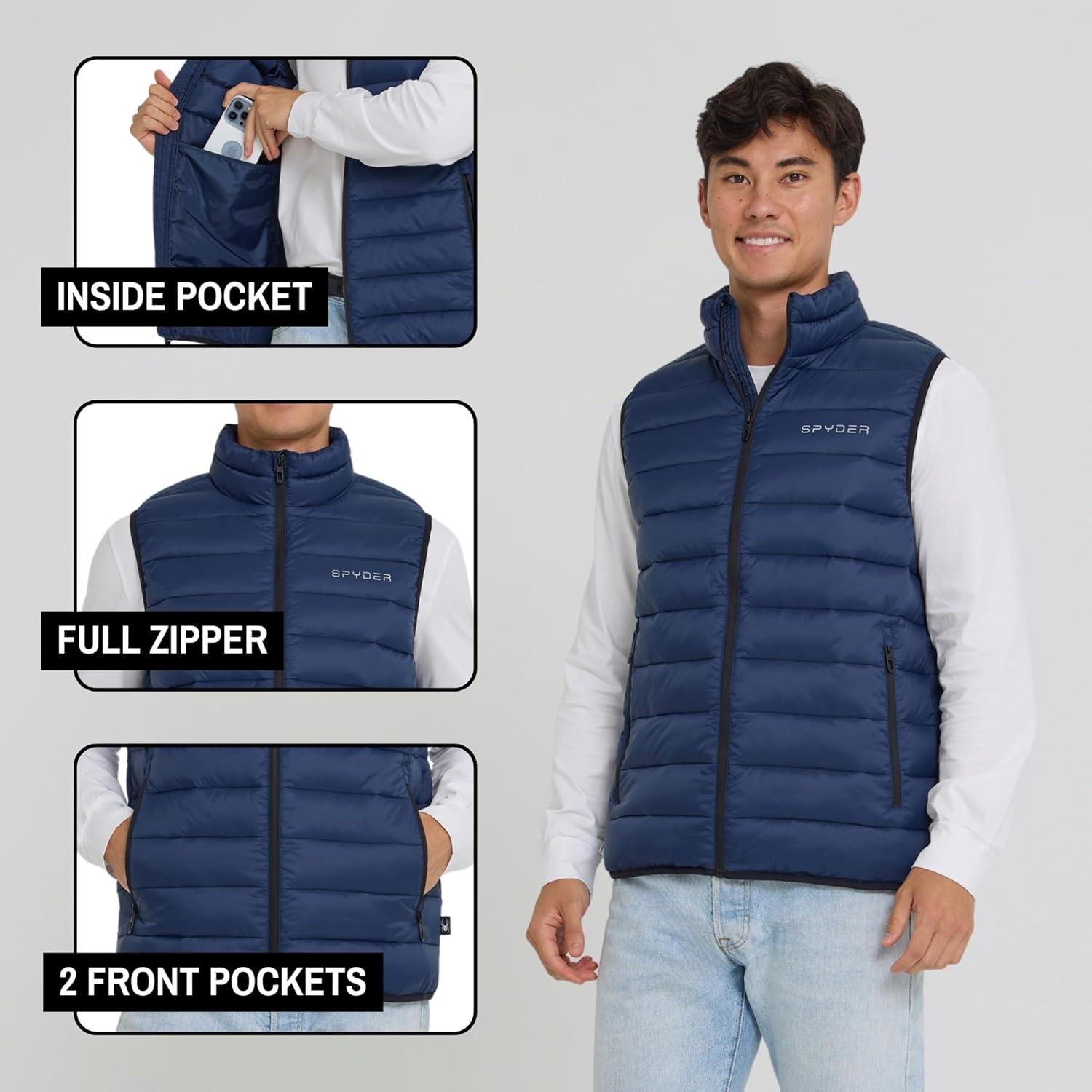 Spyder Puffer Vest for Men – Lightweight Quilted Outdoor Vest with Pockets, Puffer Vest Jacket for Men(Navy Tonal)