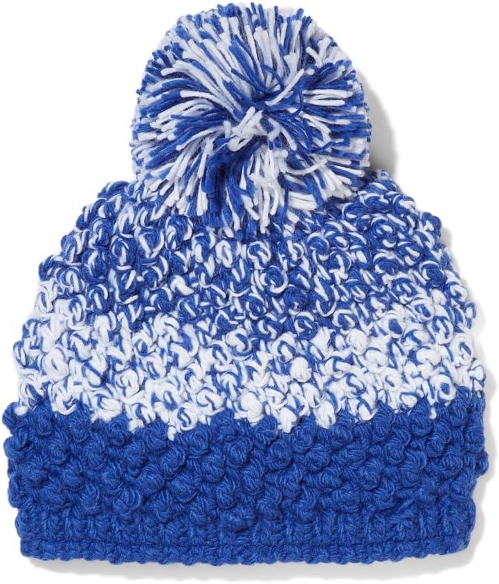 Take the brrr off your mind in the Brrr Berry Hat, knit in a variation on herringbone, with full fleece lining, a perky pom on top, and a metal logo charm.