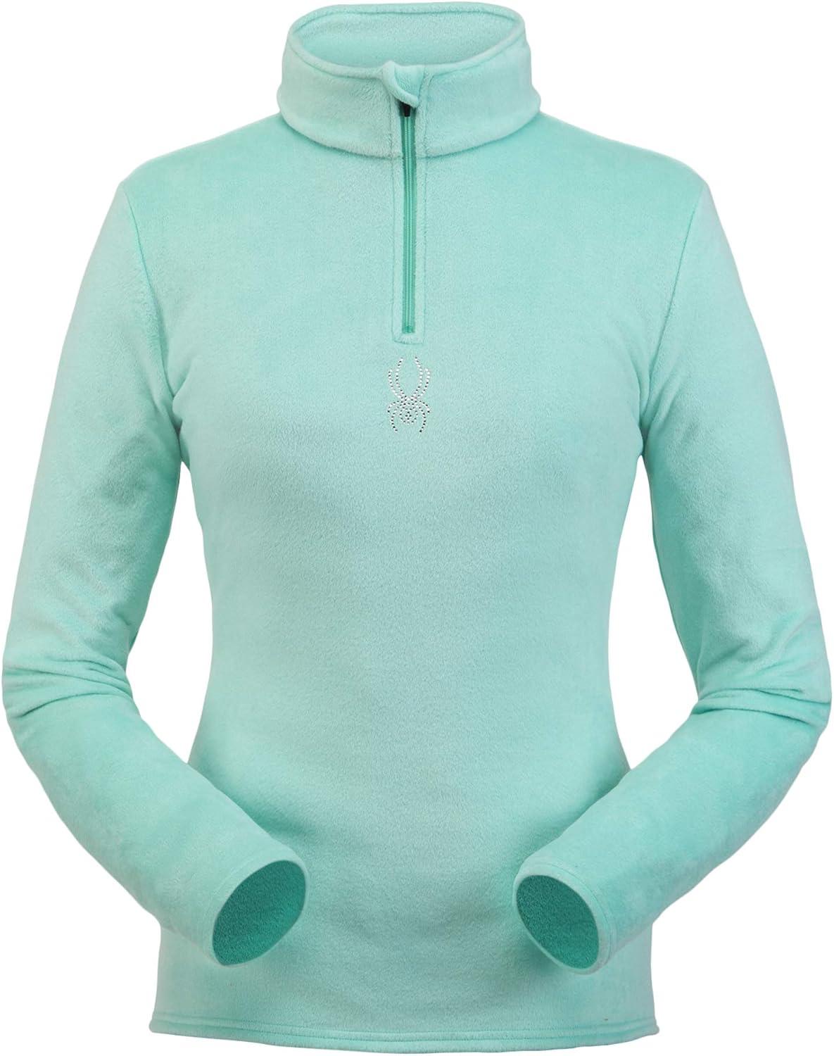 Spyder Women’s Shimmer Bug Long Sleeve Half Zip T-Neck Fleece Top(Abyss)