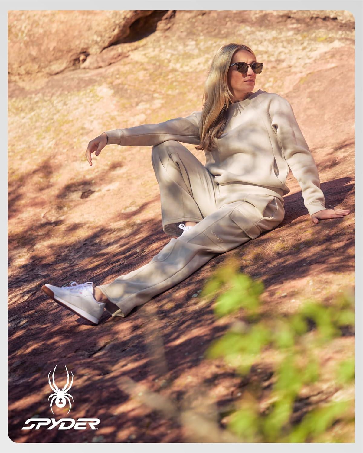 Spyder Womens Sweatpants – Cozy Fleece Joggers Athletic Cargo Sweatpants for Women with Adjustable Drawstring Waist & Pockets(Pearl)