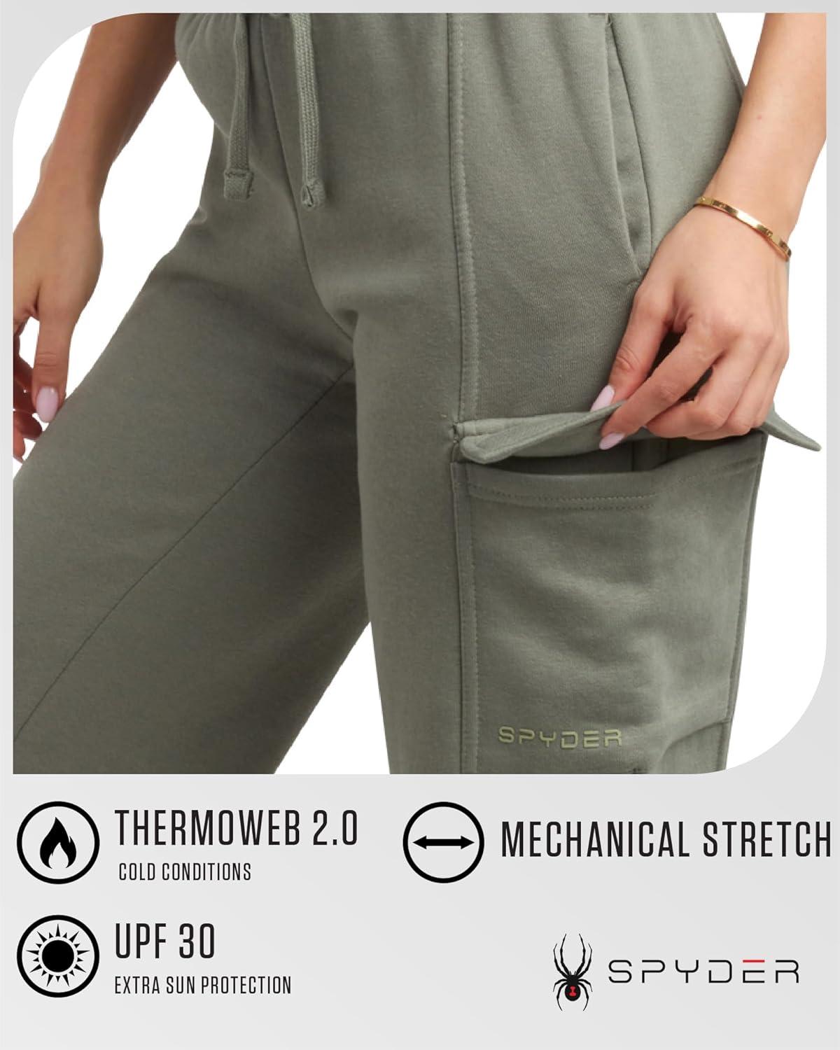 Spyder Womens Sweatpants – Cozy Fleece Joggers Athletic Cargo Sweatpants for Women with Adjustable Drawstring Waist & Pockets(Agave)