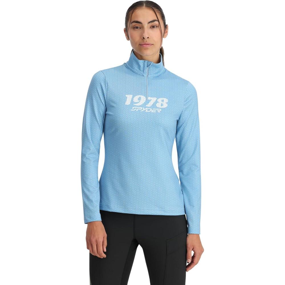 Spyder Women’s Vivid Half Zip T-Neck Ski Base Layer(Blue Drift)